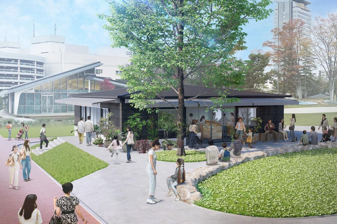 フラワー&ベーカリーカフェ レンガ坂に面した場所に建設されるこちらの施設は、建物の隣に「ハーブガーデン・エディブルガーデン」を備え、レンガ坂から公園の玄関口として、綺麗な花と美味しいパンとコーヒーで利用者を出迎える施設となります。 <営業時間> 10:00~20:00 <定休日>不定休