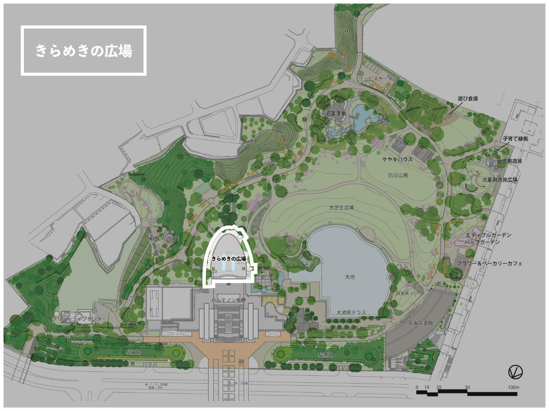 夏場は子供の水遊び場、夜のイベントで噴水をライトアップするなど、池としての使い方を楽しむこと、