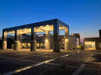 多摩センターの駅からまっすぐ歩いた先にある、多摩中央公園の玄関口にあり、80段からなるパルテノン多摩の大階段を登った先が多摩中央公園です。