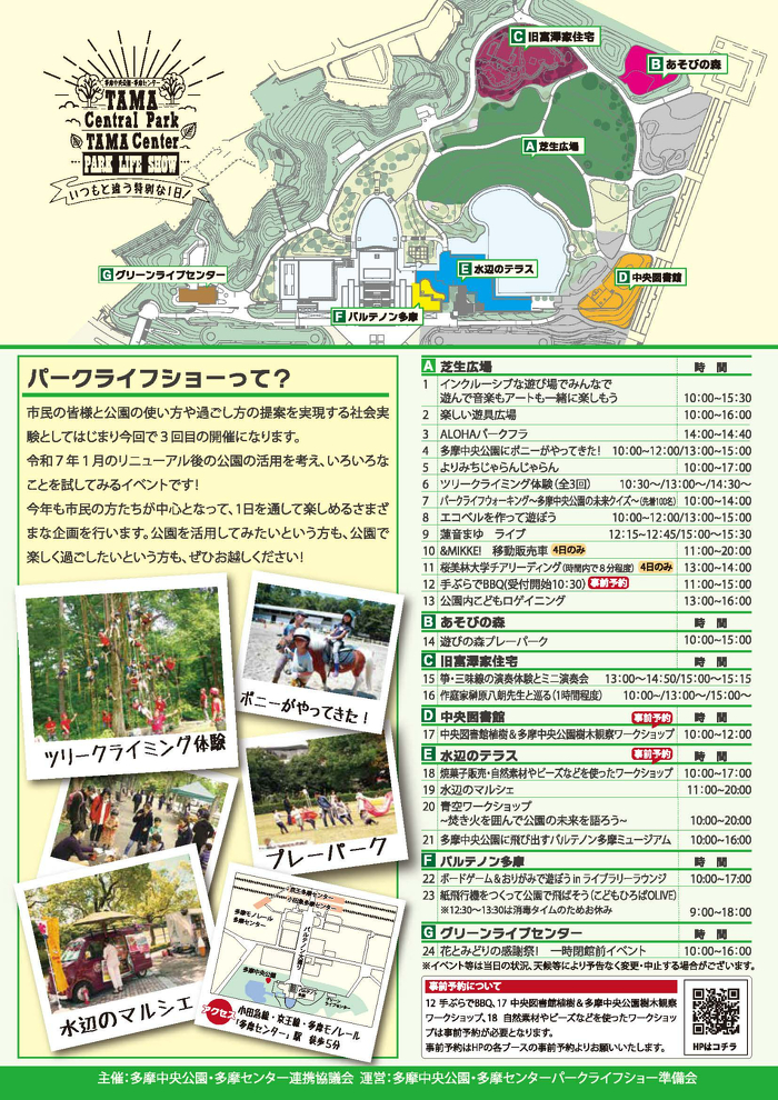 多摩中央公園を核に多摩センターの活性化を図るイベントとして、パークライフショーを開催します。