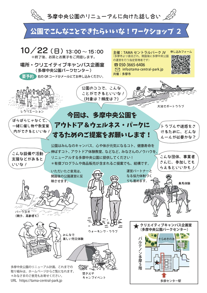 リニューアル工事が進んでいる多摩中央公園で、初期から公園に関わることができる機会となっております。
