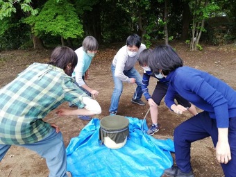 市内の公園伐採木などを使って木のおもちゃを作ります。
