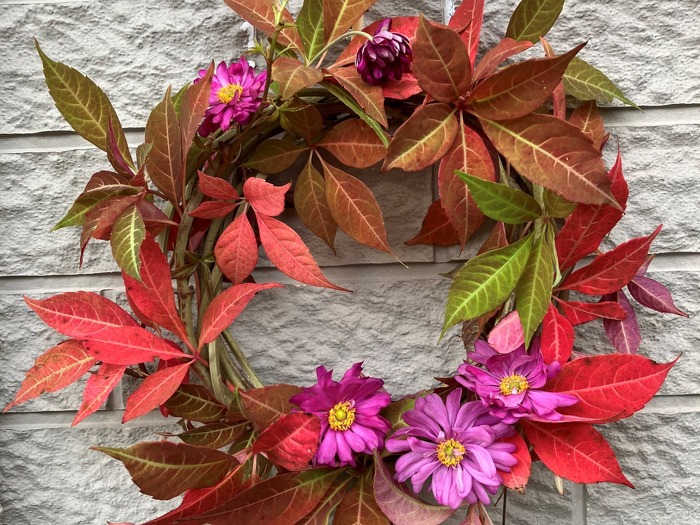 庭木の剪定後の再利用から始まりました。 ドライにしてリースや雑貨にしています。
