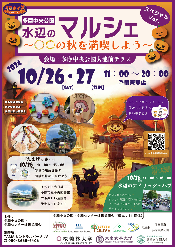 【開催終了】10/26(土),27(日)多摩中央公園水辺のマルシェスペシャル~〇〇の秋を満喫しよう~出店・出演情報