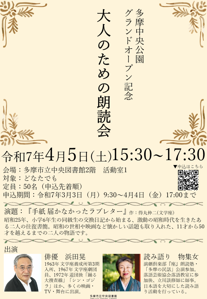 ■多摩市立中央図書館■ ※雨天の場合も4/5に実施