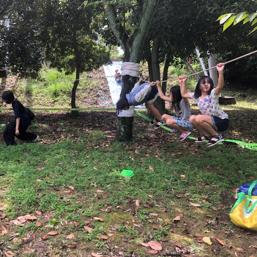 ロープ遊具、穴掘り、こま、ベーゴマ、焚き火など。子どもも大人も、自分のやりたいことを自由にできる場所で好きなように過ごす体験。