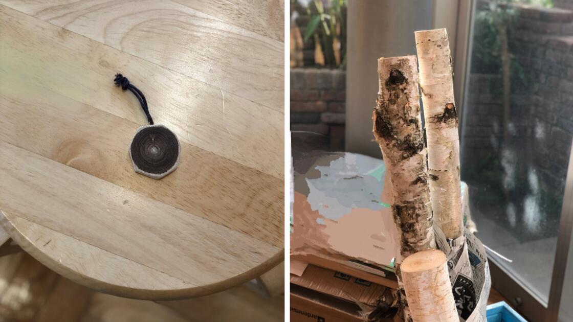 園路にあったニセアカシアの枝から、きれいなペンダントを作ります。年輪がとても美しいので、年代問わず身につけることができます。